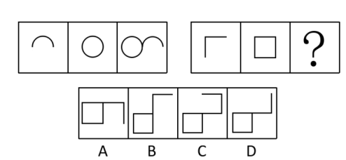 82.請(qǐng)選擇最合適的一項(xiàng)填入問(wèn)號(hào)處,使右邊圖形的變化規(guī)律與左邊圖形一致:( )